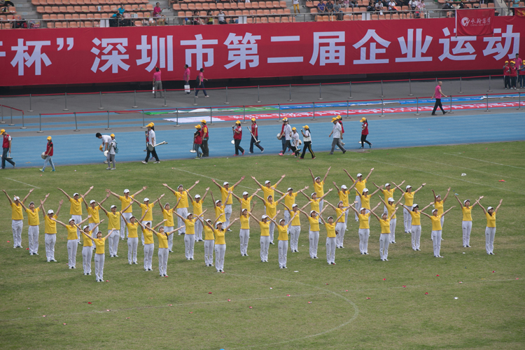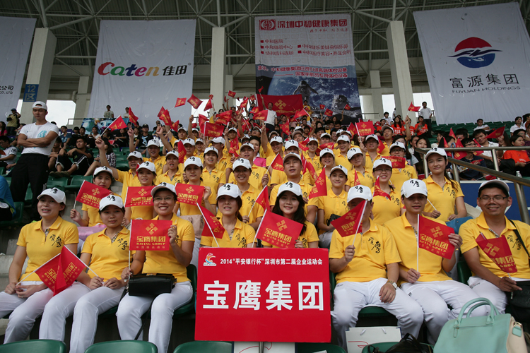 深圳企業(yè)運(yùn)動(dòng)會(huì)是由深圳市企業(yè)聯(lián)合會(huì)、深圳市企業(yè)家協(xié)會(huì)、《時(shí)代商家》雜志社聯(lián)合主辦的面向所有駐深企業(yè)的體育競賽盛會(huì)。本屆運(yùn)動(dòng)會(huì)的主題是“大家動(dòng)起來,企業(yè)更精彩?!边\(yùn)動(dòng)會(huì)共設(shè)置比賽項(xiàng)目29項(xiàng),開幕式當(dāng)日設(shè)置了廣播體操等集體項(xiàng)目、男子100米等田徑項(xiàng)目和運(yùn)轉(zhuǎn)乾坤等趣味比賽項(xiàng)目。寶鷹集團(tuán)的運(yùn)動(dòng)健兒們參加了入場方陣、廣播體操和運(yùn)轉(zhuǎn)乾坤三個(gè)項(xiàng)目。
