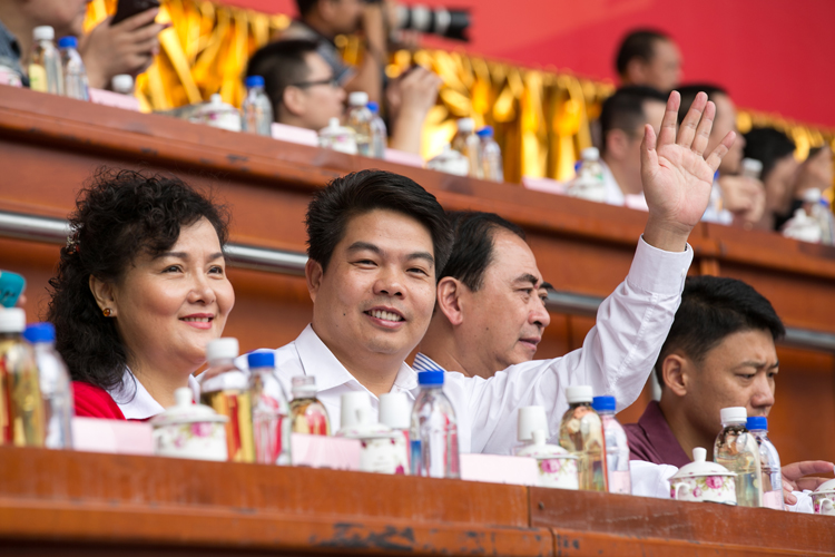 寶鷹集團(tuán)古少波董事長在主席臺(tái)向運(yùn)動(dòng)健兒揮手示意