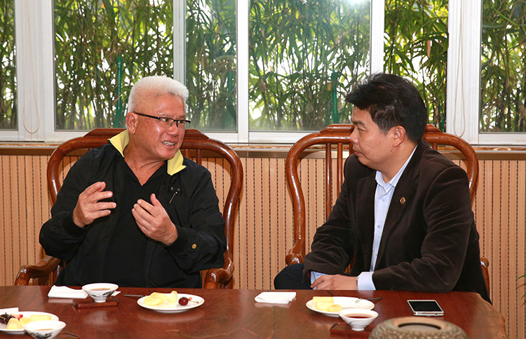 古少波董事長(zhǎng)向 黃文章拿督董事長(zhǎng)一行介紹公司發(fā)展情況