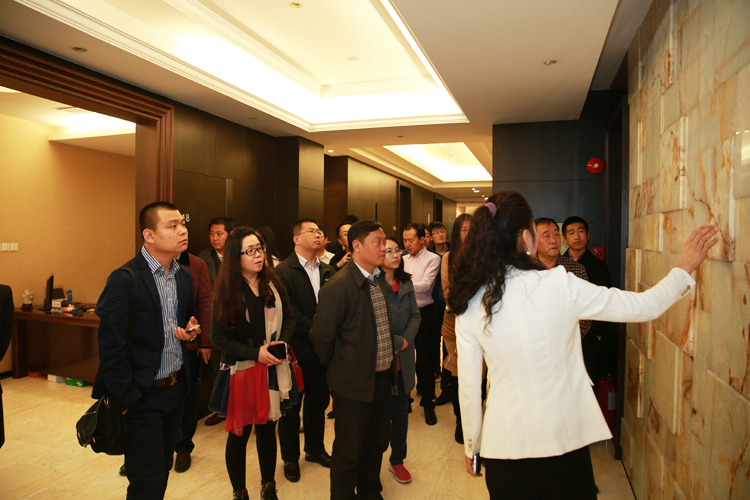 考察團(tuán)一行在參觀寶鷹集團(tuán)總部時(shí)了解建筑裝飾工藝