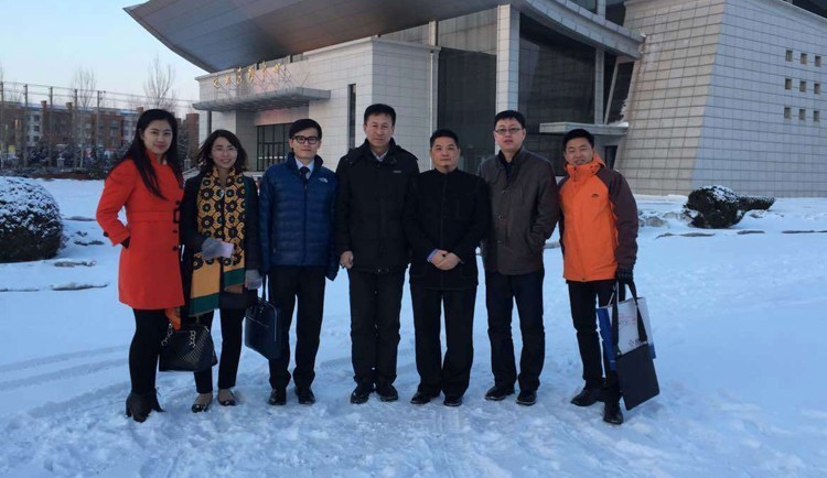 寶鷹集團古樸副總裁(右三)、吳義課總裁助理(左三)一行與黑龍江建筑職業(yè)技術(shù)學院相關(guān)領(lǐng) 導合影