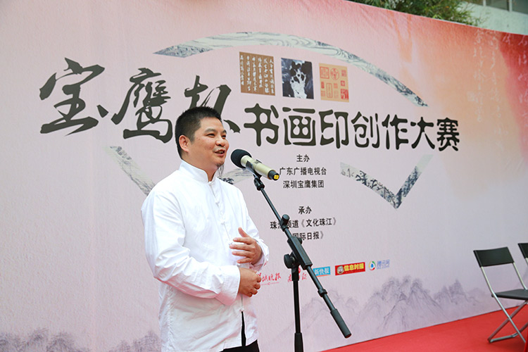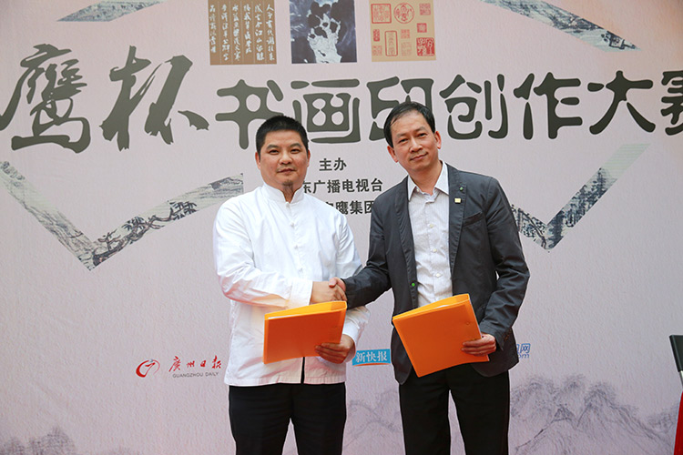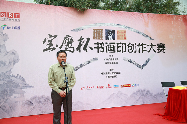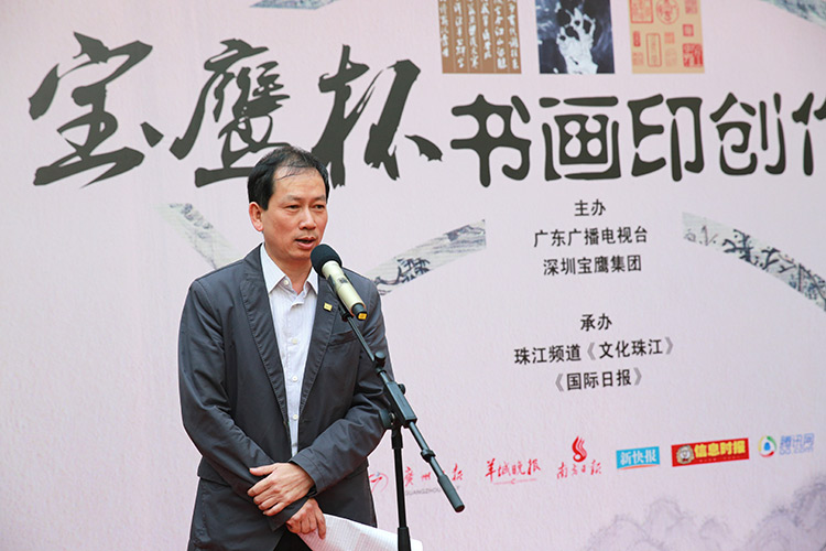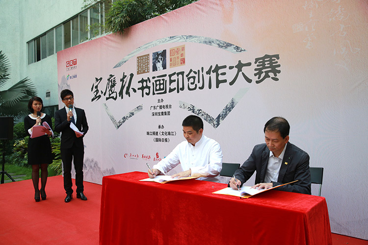 4月16日,由廣東廣播電視臺、深圳市寶鷹建設(shè)控股集團股份有限公司主辦,珠江頻道《文化珠江》欄目組和《國際日報》承辦的“寶鷹杯”國際書畫印創(chuàng)作大賽啟動儀式在廣州廣東電視臺中心盛大舉行,寶鷹集團副總裁古樸、總裁助理吳義課、品牌文化宣傳主管高升等領(lǐng)導(dǎo)出席了啟動儀式,副總裁古樸與廣東廣播電視臺副臺長蔡照波一同簽訂了《“寶鷹杯”國際書畫印創(chuàng)造大賽合作協(xié)議》,還在儀式最后發(fā)表了重要致辭。