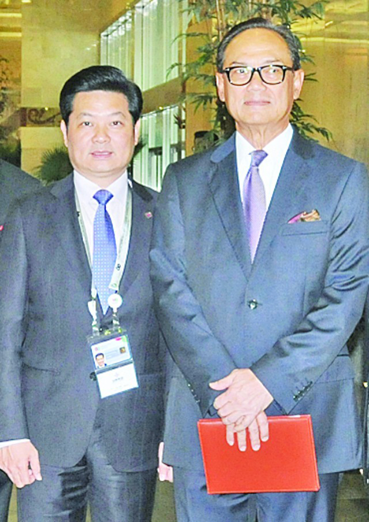 古少明主席(左)與印尼工業(yè)部沙勒部長(右)親切交談
