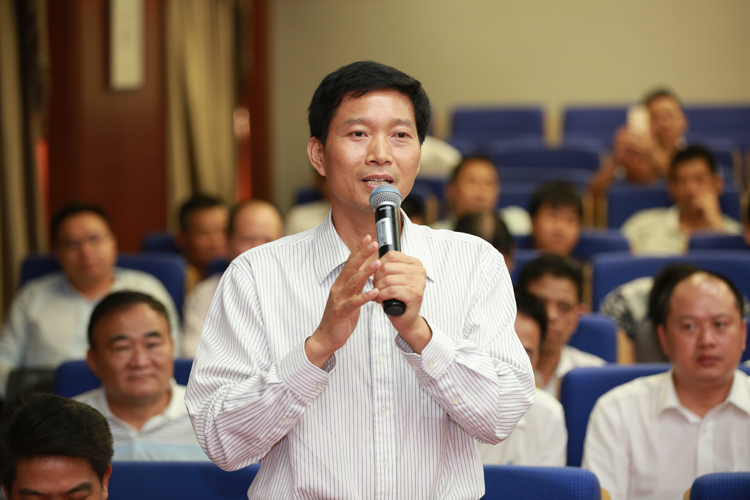 考察團(tuán)一行之后于寶鷹文化大講堂與寶鷹股份領(lǐng)導(dǎo)舉行了互動交流會,董事會秘書鐘志剛主持會議,古少波董事長做了以“一帶一路”和“互聯(lián)網(wǎng)+”戰(zhàn)略的踐行者的主題演講,古少明主席回答了考察團(tuán)成員提出的若干問題。