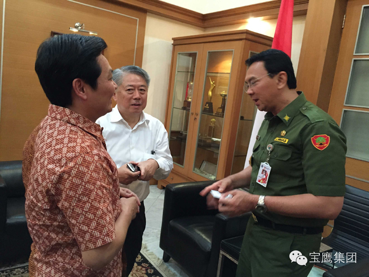 6月1日下午,寶鷹集團(tuán)董事局主席、印尼寶鷹建設(shè)集團(tuán)總裁古少明在印尼INTILAND地產(chǎn)集團(tuán)董事長(zhǎng)吳端華和印尼熊氏集團(tuán)董事長(zhǎng)熊德龍等陪同下,專程前往印尼雅加達(dá)省省政府拜會(huì)鐘萬學(xué)省長(zhǎng)。
