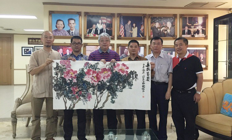 6月22日,周國城主席在古樸副總裁和印尼寶鷹工作人員的見證下,為印尼寶鷹題字,一起祝福印尼寶鷹事業(yè)飛黃騰達(dá)。6月23日,印尼INTILAND地產(chǎn)集團(tuán)董事長吳端華設(shè)宴接待了周國城主席和古樸副總裁一行,暢敘了與寶鷹的合作情誼。周國城主席在宴席上向吳端華董事長贈(zèng)送了自己的手卷作品。之后,周國城主席和古樸副總裁在熊德龍董事長和吳端華董事長的陪同下,拜訪了印尼國家安全部部長Stiyoso,并贈(zèng)送了周國城主席的手卷作品。