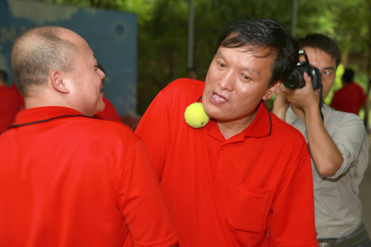 畢業(yè)墻項(xiàng)目中,許平常務(wù)副總裁代表全部學(xué)員立下20分鐘挑戰(zhàn)成功的“軍令狀”,教練還要求翻閱過程中必須全員鴉雀無聲。面對這種嚴(yán)苛的條件,學(xué)員們在經(jīng)過短暫磋商后,即開始壘起了“人墻”,用堅(jiān)實(shí)的肩膀完成托舉,用有力的手掌實(shí)現(xiàn)了拉升,學(xué)員們團(tuán)結(jié)一心,眾志成城,不拋棄不放棄每一個隊(duì)友,以頑強(qiáng)的毅力、不屈的意志和甘為人梯的奉獻(xiàn)精神奮戰(zhàn)到底,最終以16分18秒的優(yōu)異成績共同翻閱了這道“畢業(yè)”之墻。最后在教練動情的總結(jié)中,每位隊(duì)員都來到彼此的面前,用溫暖的擁抱和一句“有你真好”表達(dá)著自己對團(tuán)隊(duì)的感恩。值得一提的是,一位體重高達(dá)100公斤以上的學(xué)員因在畢業(yè)墻項(xiàng)目中隊(duì)友從未對自己刮目相看,依舊用雙肩和雙手幫助他翻閱了畢業(yè)墻而流下了感動的熱淚。