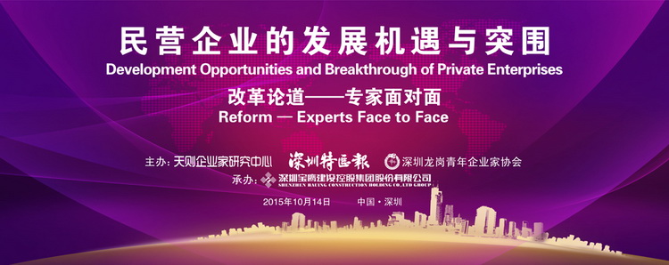 10月14日,由天澤企業(yè)家研究中心、深圳特區(qū)報、深圳龍崗青年企業(yè)家協(xié)會和深圳寶鷹建設(shè)集團(tuán)股份有限公司共同舉辦的“民營企業(yè)的發(fā)展機(jī)遇與突圍,改革論道——專家面對面”交流會于寶鷹集團(tuán)盛大召開。