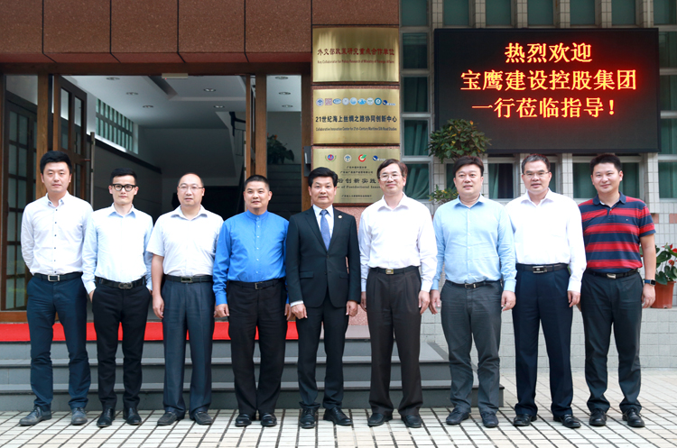 寶鷹 在廣東外語外貿(mào)大學(xué)副校長(zhǎng)何傳添的陪同下,古少明主席一行先后考察了廣東外語外貿(mào)大學(xué)21世紀(jì)海上絲綢之路協(xié)同創(chuàng)新中心、圖書館和梁宗岱紀(jì)念館。在隨即召開的校企合作洽談會(huì)上,古少明主席指出:廣東外語外貿(mào)大學(xué)人杰地靈、風(fēng)景如畫,自己非常榮幸能到這所著名高校參觀學(xué)習(xí)。寶鷹集團(tuán)創(chuàng)立至今,以建筑工程裝飾為主業(yè),不斷開拓,形成了集建筑裝飾、資本運(yùn)營、互聯(lián)網(wǎng)+、文化藝術(shù)多方位發(fā)展的新局面。寶鷹集團(tuán)一直十分重視與高校的合作,并進(jìn)行了多年的探索。此前,寶鷹集團(tuán)與廣西水利電力職業(yè)技術(shù)學(xué)院合作,從開始的一個(gè)寶鷹班,到現(xiàn)在的寶鷹建筑學(xué)院,校企合作規(guī)模不斷壯大,學(xué)生畢業(yè)就業(yè)率高達(dá)98%?,F(xiàn)在,寶鷹建筑學(xué)院已經(jīng)形成了一套健全的模式。目前,寶鷹集團(tuán)正在沿著國家的一帶一路戰(zhàn)略進(jìn)行海外業(yè)務(wù)的開拓。此時(shí),特別需要一大批高、精、尖的語言類和經(jīng)貿(mào)類復(fù)合型人才,廣東外語外貿(mào)大學(xué)21世紀(jì)海上絲綢之路協(xié)同創(chuàng)新中心的研究課題與實(shí)踐,特別是民營企業(yè)走出去的相關(guān)研究,與寶鷹集團(tuán)的海外戰(zhàn)略高度契合。同時(shí),廣東外語外貿(mào)大學(xué)培養(yǎng)的語言類和經(jīng)貿(mào)類人才十分符合寶鷹集團(tuán)的用人需求,能與該校合作,必將為寶鷹集團(tuán)在新起點(diǎn)上騰飛提供巨大幫助。