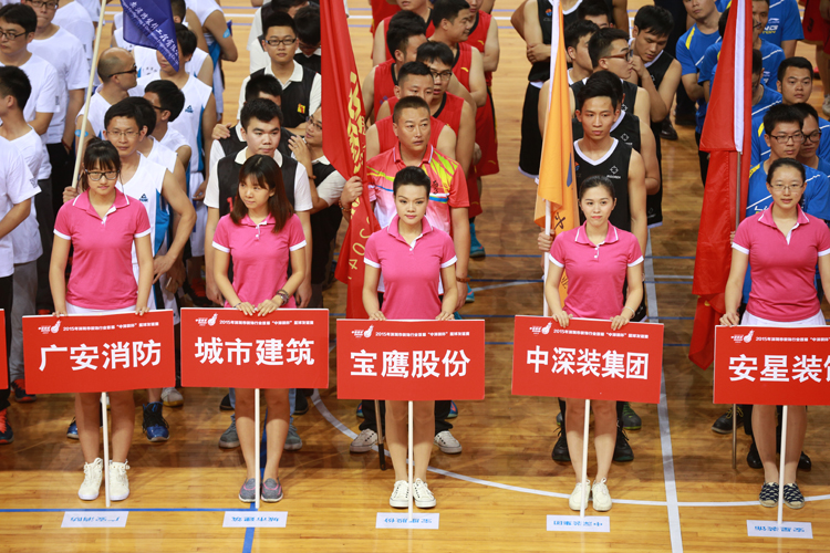 10月16日,秋陽燦爛,煦風(fēng)和暢,深圳市裝飾行業(yè)首屆“中深裝杯”籃球友誼賽于深圳市體育中心籃球館盛大開幕。深圳市裝飾行業(yè)協(xié)會會長高剛,深圳市體育局副局長柯剛明,福田區(qū)人大副主任、福田區(qū)總工會主席王躍慶,寶鷹集團(tuán)董事長古少波,中建南方董事長劉慧永等領(lǐng)導(dǎo)出席了開幕式,來自裝飾行業(yè)的近千名員工參加了開幕式。寶鷹集團(tuán)籃球隊(duì)的十五名運(yùn)動健兒將出征此次比賽,近200余位寶鷹人亦來到比賽現(xiàn)場,為寶鷹健兒吶喊助威。