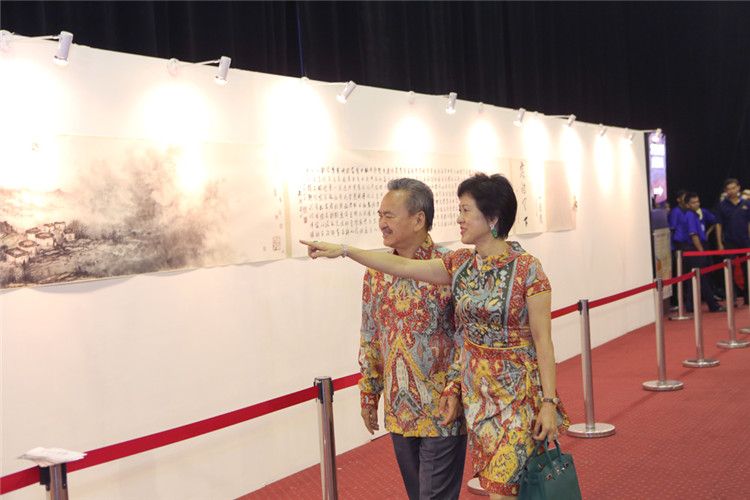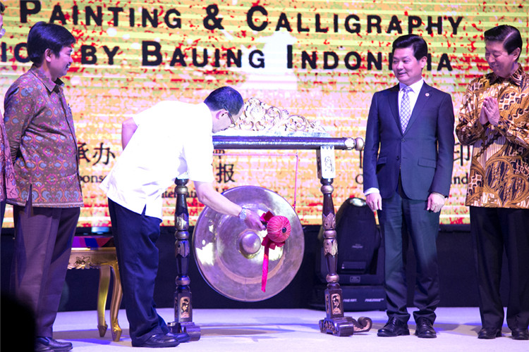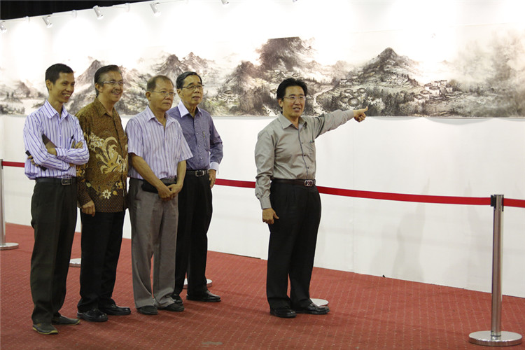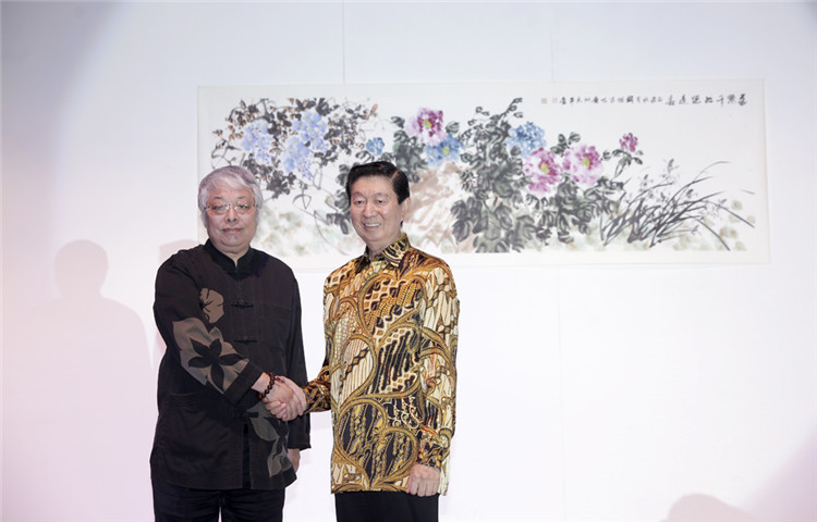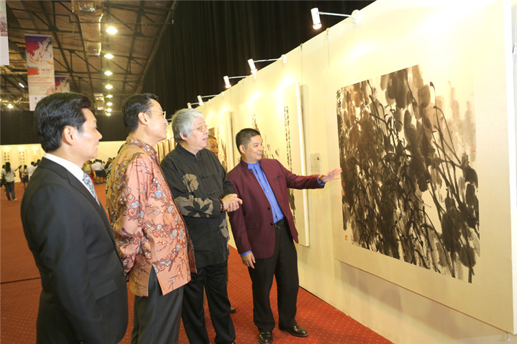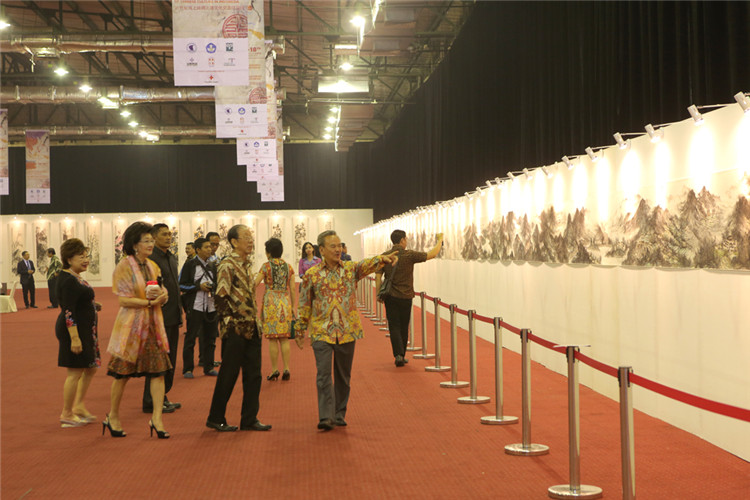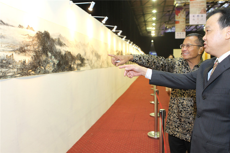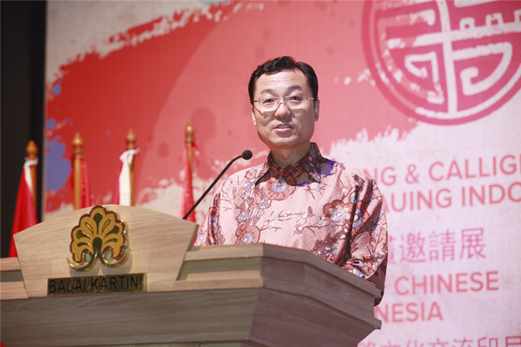 謝鋒還表示,藝術(shù)是聯(lián)結(jié)世界、溝通民心的橋梁。正如蠟染和木雕是印尼人民引以為傲的藝術(shù)瑰寶,水墨畫和書法承載著華夏五千年厚重文明,體現(xiàn)了中國美術(shù)的精髓,色彩看似單調(diào),意境豐富悠遠(yuǎn),凝聚了中華民族的智慧、性格和情感。希望此次書畫展能夠?yàn)橛∧崛嗣翊蜷_一扇感受中國文化的窗口,增進(jìn)兩國人民的相互了解和友誼。