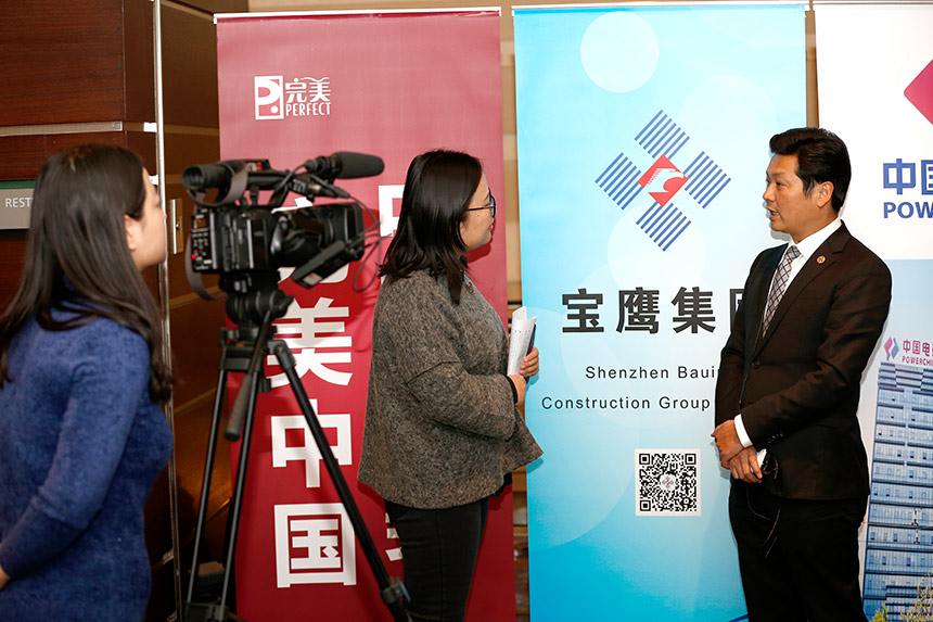 ▲新加坡《聯(lián)合早報(bào)》記者就“一帶一路”話題采訪寶鷹集團(tuán)董事局主席古少明