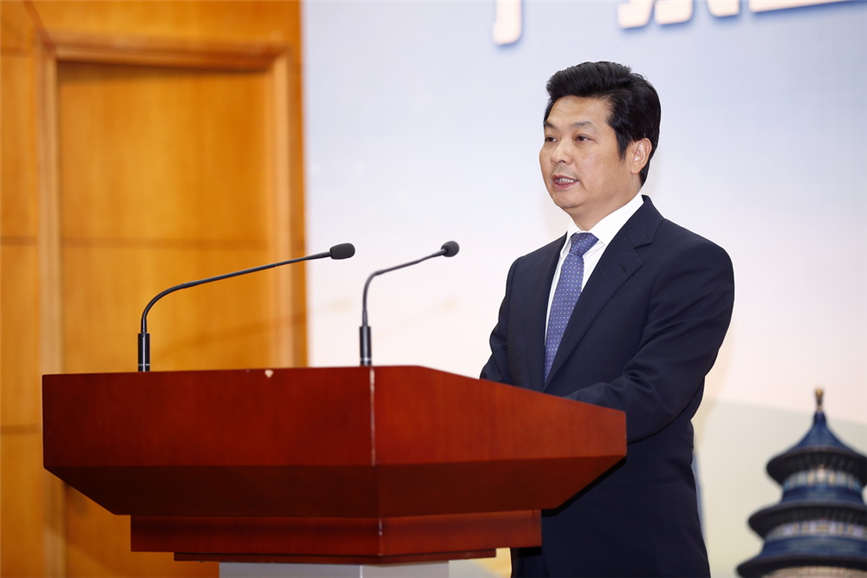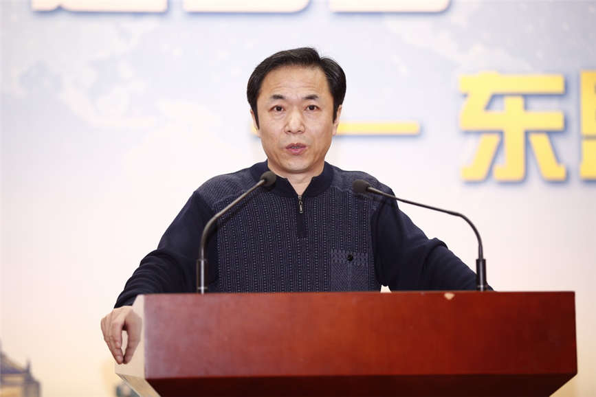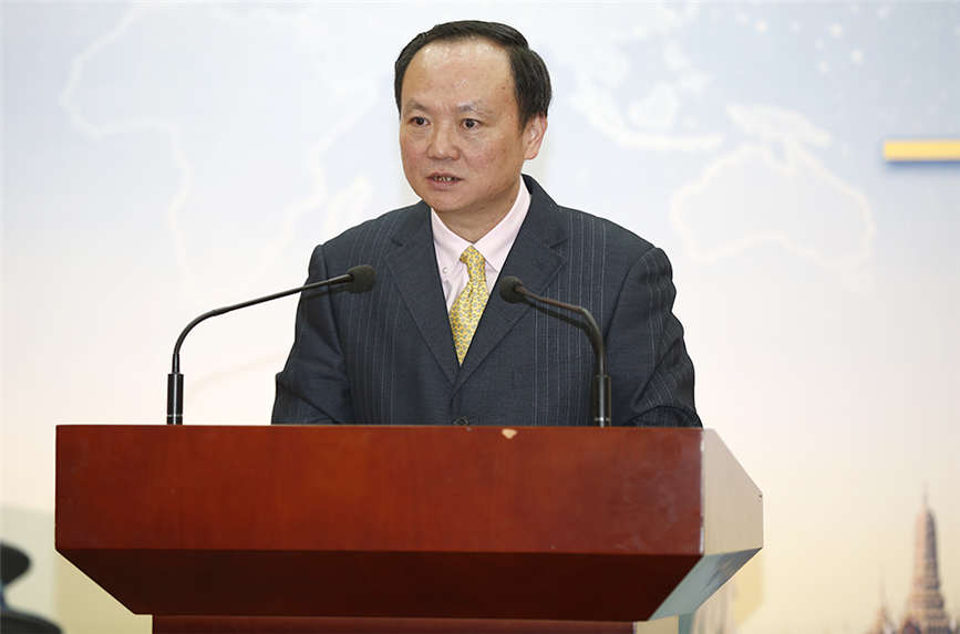 ▲商務(wù)部對(duì)外交流與合作司處長(zhǎng)李洪偉發(fā)言
