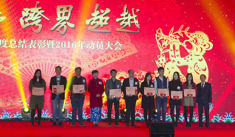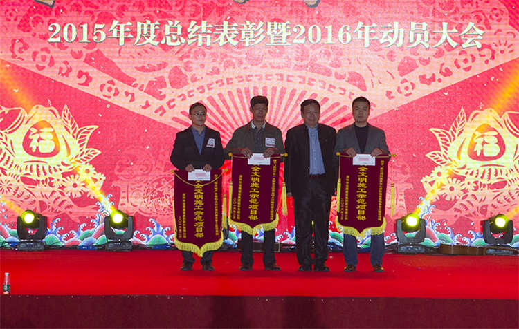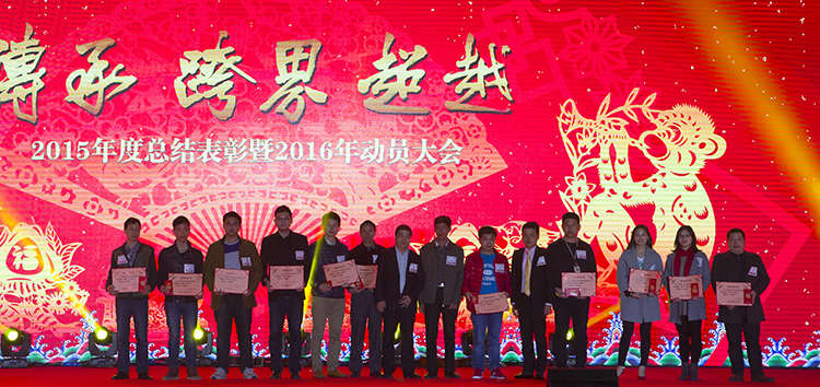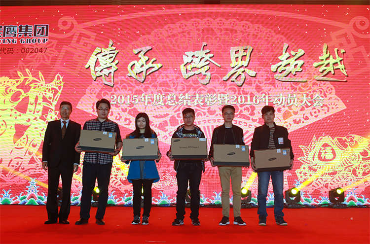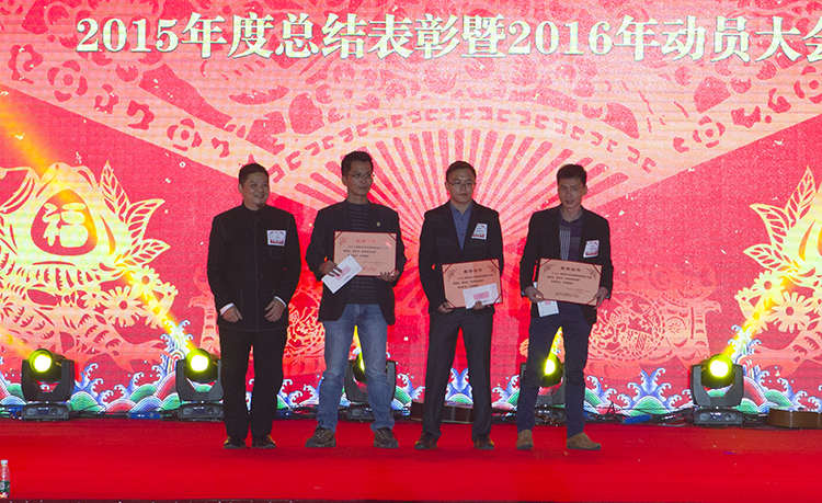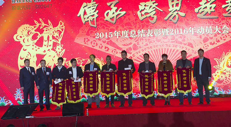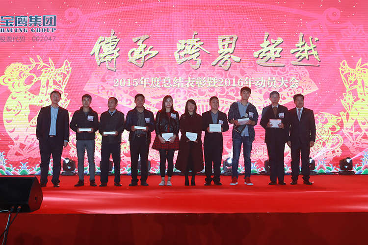 隨后,胡蘭萍主席依次宣讀了寶鷹集團2015年優(yōu)秀員工、優(yōu)秀項目經(jīng)理、先進管理者、優(yōu)秀項目部、安全文明施工示范項目部、先進集體和業(yè)績突出者的獲獎名單,并由集團領(lǐng)導(dǎo)和受邀嘉賓依次為各位獲獎?wù)哳C發(fā)獎項和證書。獲獎?wù)叽砭诎l(fā)言中強調(diào)團隊的重要性和集體榮譽感,表示要在新的一年繼往開來,不斷努力。