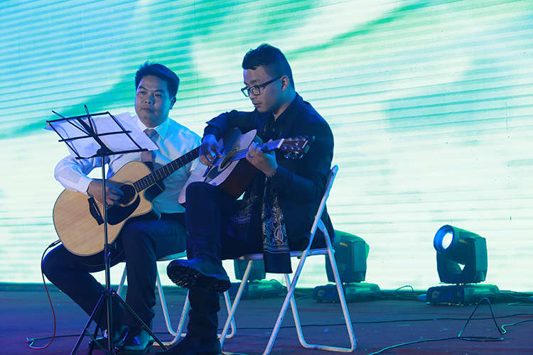▲深裝協(xié) 高剛會長、莊志偉常務(wù)副會長、寶鷹集團古少明主席合唱歌曲《愛拼才會贏》