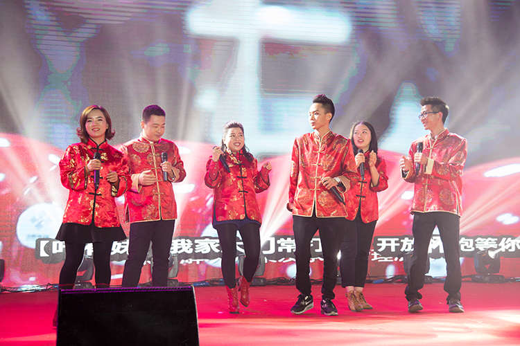 大會晚宴在各位集團領(lǐng)導(dǎo)和嘉賓的祝酒聲和拜年聲中開始。隨著盛裝的晚宴主持人閃亮登場,現(xiàn)場隨即侵入在一片歡樂的海洋里,大家用歌唱表達對新年的祝福,用舞蹈揮動著春天的希望,晚宴中穿插的抽獎環(huán)節(jié)更是牽動著現(xiàn)場觀眾的心。值得一提的是,臨時添加的現(xiàn)金大獎將現(xiàn)場氛圍迅速點燃,并一步步推向高潮。
