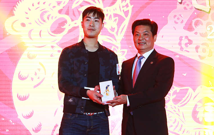 ▲副總裁劉鎮(zhèn)波、余前景為第二批優(yōu)秀員工頒獎