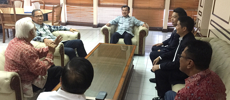▲卡拉副總統(tǒng)接見印尼國(guó)際日?qǐng)?bào)董事長(zhǎng)熊德龍、寶鷹股份董事長(zhǎng)古少波、寶鷹集團(tuán)副總裁古樸一行