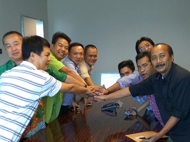 寶鷹股份董事長古少波與印尼寶鷹同事在項(xiàng)目所在地吉普特拉大樓合影