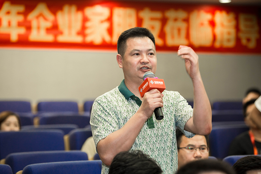 在接下來的交流活動中,青年企業(yè)家代表們踴躍發(fā)言,就企業(yè)文化建設、如何在一帶一路沿線國家蓄力發(fā)展等問題與古樸副總裁展開了熱烈的互動。深圳市鄉(xiāng)下仔綠色食品有限公司總經(jīng)理曾國忠就企業(yè)培訓中面臨的問題與古樸副總裁展開了討論,曾國忠總經(jīng)理說,現(xiàn)在各種培訓開展火熱,很難去選擇一個標準去判斷培訓的價值與意義。古樸副總裁從培訓的目的就是提高管理者及員工“自學、自立”能力這一角度回答了相關問題。