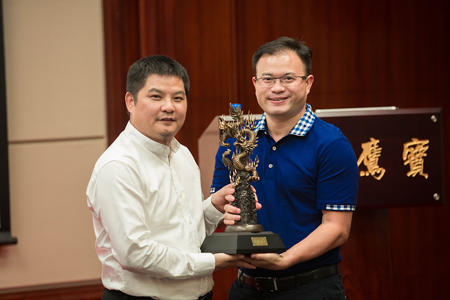 精彩的討論獲得了在場企業(yè)家們的陣陣熱烈掌聲。討論會后,深圳市龍崗團區(qū)委書記郭躍華、團區(qū)委副書記鄒慧鋒共同向古樸副總裁贈送了紀念品。