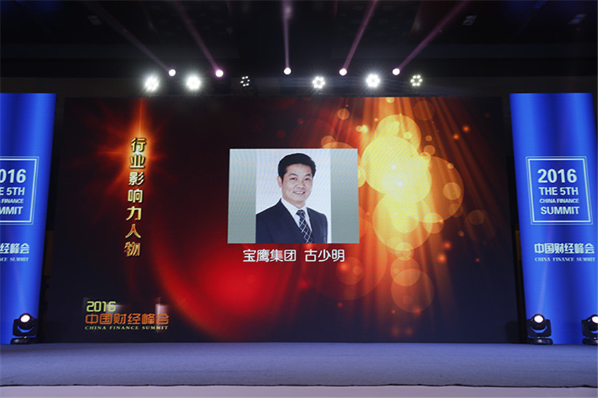 主旨演講后,中國財(cái)經(jīng)峰會組委會授予寶鷹集團(tuán)“2016(行業(yè))影響力品牌”,寶鷹集團(tuán)董事局主席古少明因其“突破、挑戰(zhàn)”精神,獲評“2016(行業(yè))影響力人物”。