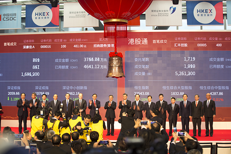 12月5日,“深港通”正式啟動,深圳香港兩地同步舉行開通儀式。廣東省委書記胡春華、證監(jiān)會主席劉士余、深圳市委書記馬興瑞等領(lǐng)導(dǎo)出席并見證中國資本市場這一重大歷史事件。